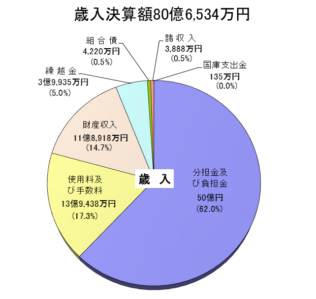 当組合を構成する5市1町からの分担金で、全体の62.0%を占めています。