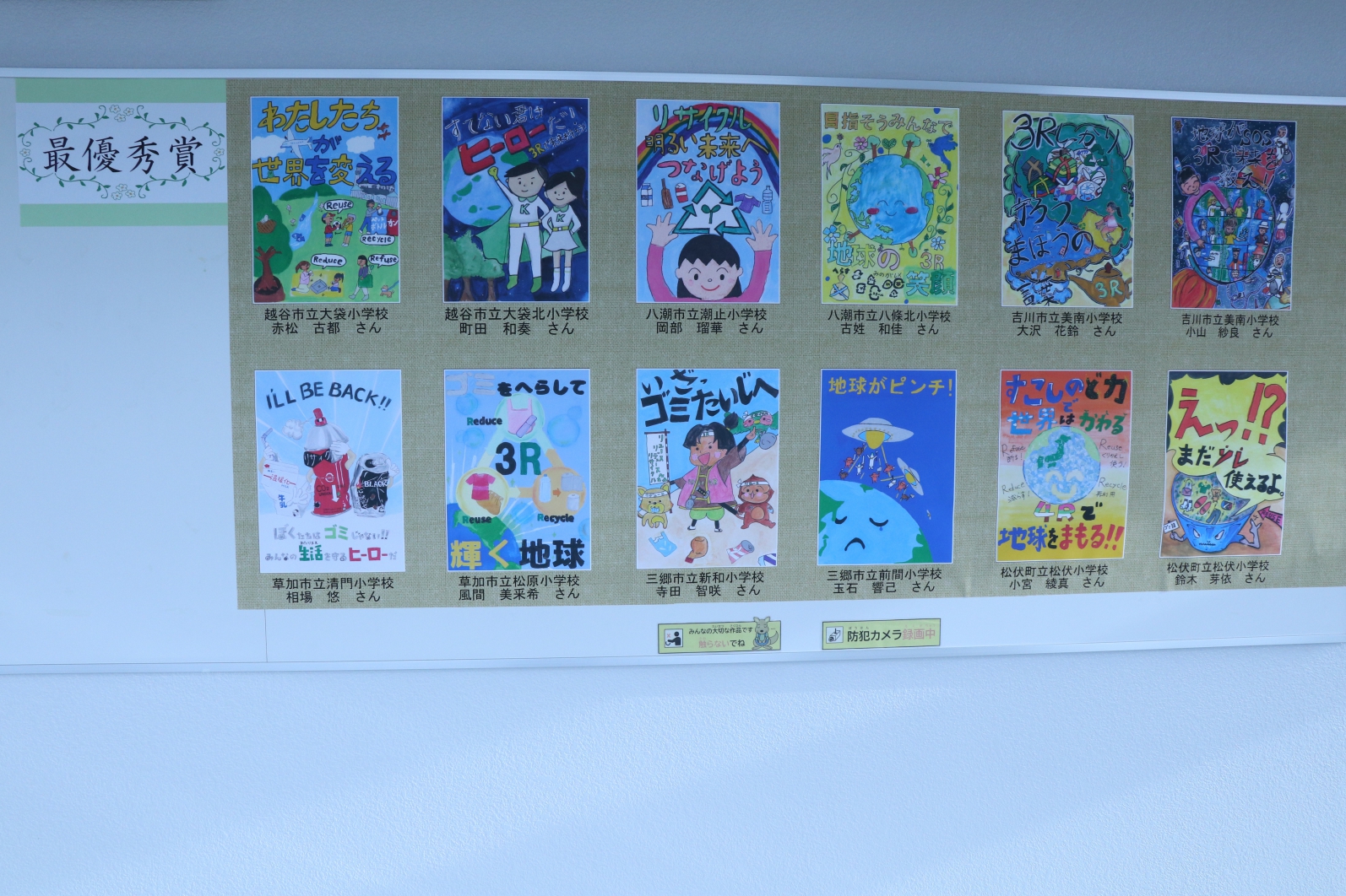最優秀賞と優秀賞を受賞した作品の写しを第一工場ごみ処理施設の展望台にも掲示しています。