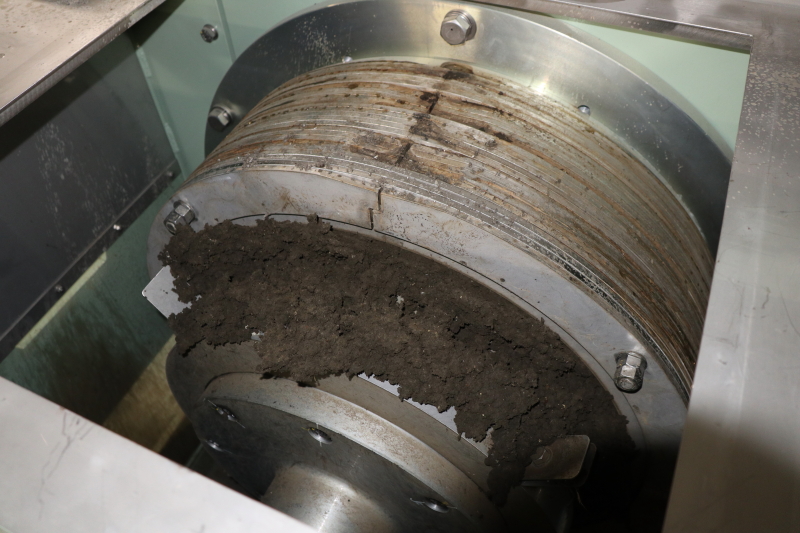 ※直接脱水処理では、搬入されたし尿、浄化槽汚泥、農業集落排水汚泥に薬品を加え、大部分の有機物等を 直接脱水機にて固体・液体に分離します。分離液は、生物処理工程を経て、希釈して公共下水道に放流し ます。また、固形物は、水分を70%以下にまで脱水し、第二工場ごみ処理施設へ搬入し助燃剤として有効 利用します。